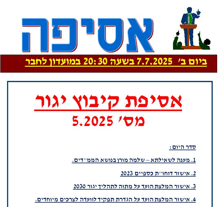 - אישור המלצת הועד על מתוה לתהליך יגור 2030