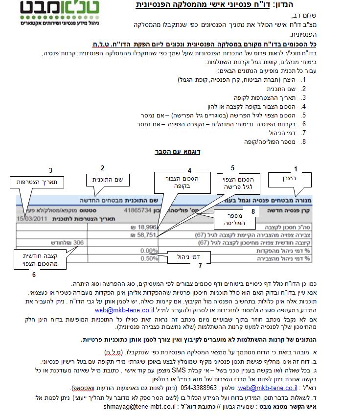 החותמים יכולים לפנות לאיש הקשר בטנא מבט: שמעיה גבעון במייל shmayag@tene-mbt.co.il ולבקש הסבר ואף לתאם פגישה אישית בכדי להבין את מצבם הפנסיוני.