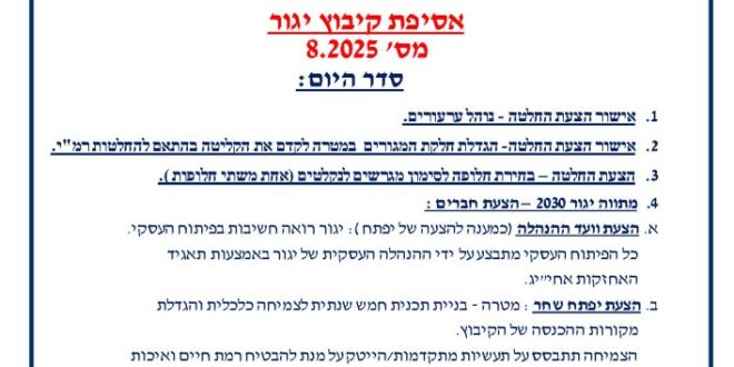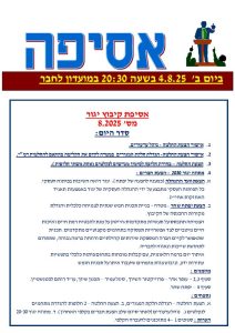 אסיפה מס' 1.2026 – הזמנה שניה מעודכנת 1. אישור סדר היום. 2. א. הצעת הועד …