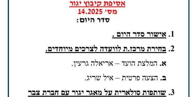 אסיפה 14-2025, ליום חמישי הקרוב 9.10.2025 ב20:30 .