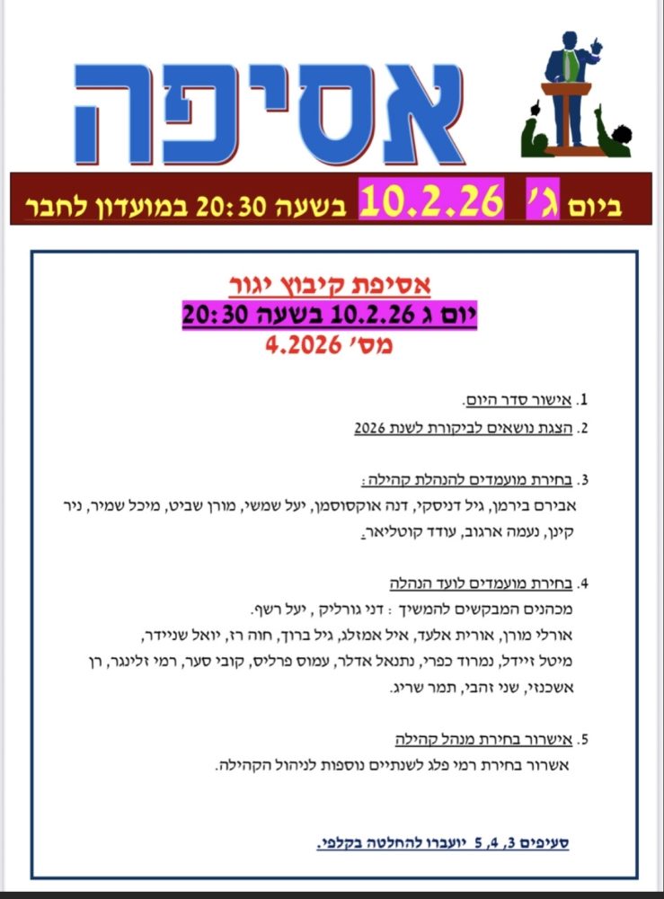 אסיפה להצגת מועמדים ועד והנהלת קהילה 10.3 יום ג shimshi-agmon לפני 2 ימים אסיפות השאר תגובה 71 צפיות הדפסה