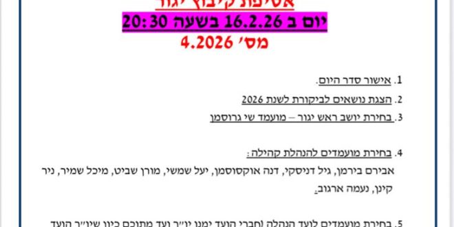 אסיפה ביום ב 16.2.2026 בשעה 20:30 במועדון מידע על נציגי הציבור המועמדים, כפי שהם רשמו, בקישור: https://pagefactory.co.il/%d7%9e%d7%95%d7%a2%d7%9e%d7%93%d7%99%d7%9d-%d7%9c%d7%aa%d7%a4%d7%a7%d7%99%d7%93%d7%99%d7%9d/
