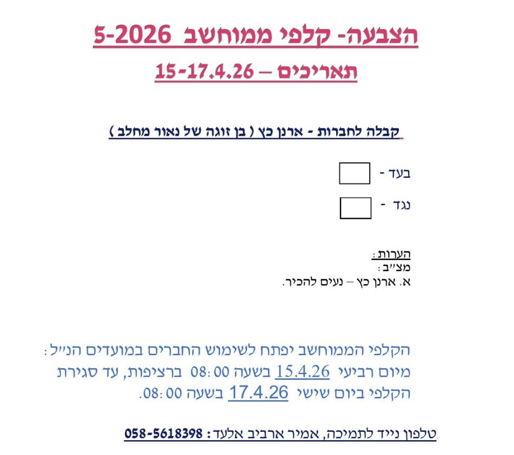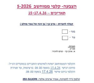 קלפי ממוחשב - מיום רביעי 15.4- יום שישי 17.4 על מנת להצביע יש להכנס לקישור שיישלח ברביעי בבוקר כהודעת SMS, כרגיל.