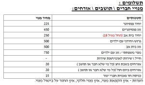 א. חבר המזמין ארוע עבור החברה או העסק בה הינו עובד עלות= 1000 ₪ , עד 4 שעות ועלות 100 ₪ לכל שעה נוספת ) לא כולל ימי שבת וחג (.