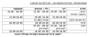 ייתכנו שינויים בשעות הפתיחה במהלך העונה